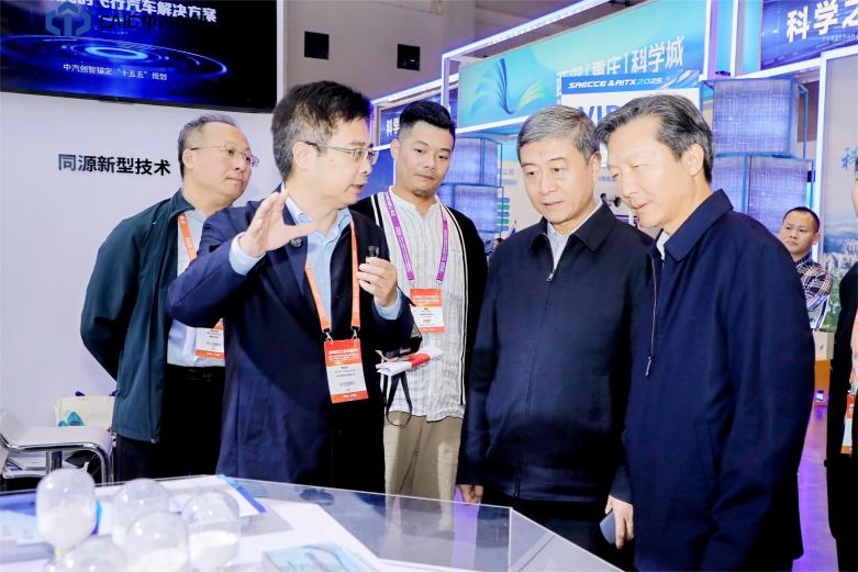 东风汽车集团党委常委、副总经理尤峥(右二)一行莅临中汽创智展台